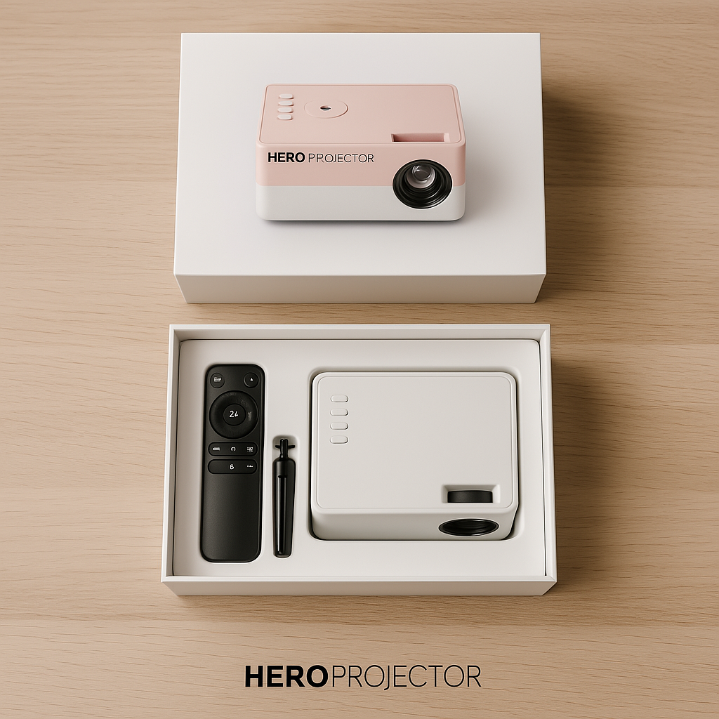 Hero MiniProjector™ pushes up to 1920 × 1080p resolution from a palm-size shell, so movie nights, binge sessions, and late-night gaming feel bigger than any TV—without the bulk or price tag.